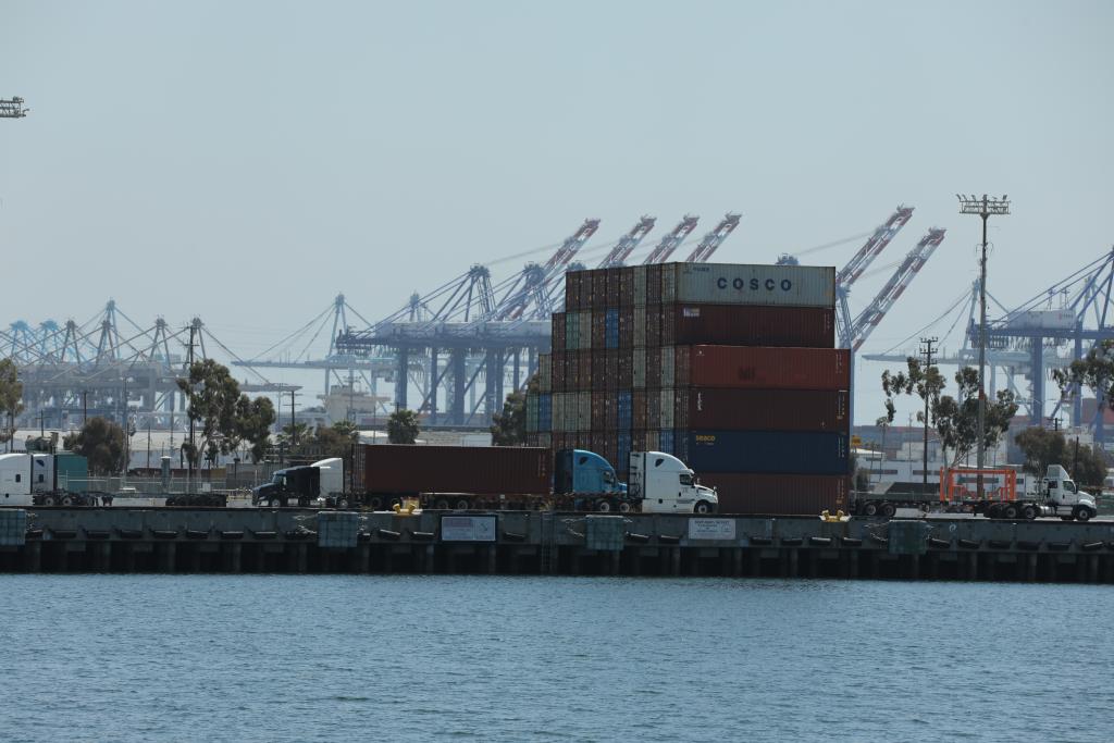 這是4月29日在美國洛杉磯港拍攝的集裝箱和卡車。洛杉磯港執(zhí)行董事吉恩·塞羅卡當天表示,隨著美國關稅政策導致企業(yè)削減進口訂單,洛杉磯港下周入境貨運量預計將比去年同期下跌超過35%。新華社發(fā)(邱晨攝)