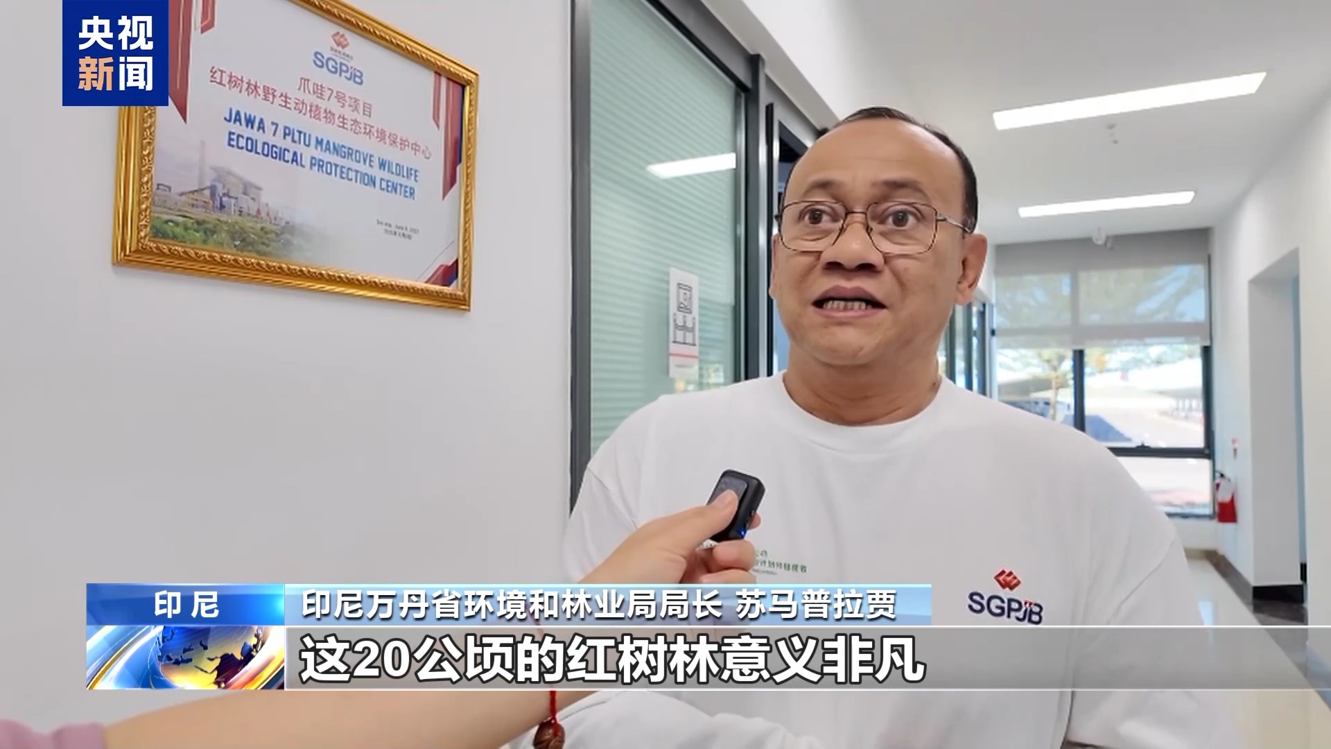 總臺記者 李琳:我現(xiàn)在所在的位置是印尼(單機容量)最大的火力發(fā)電廠。我現(xiàn)在所在的這個平臺有80米高。從我身后大家可以看到一大片紅樹林和電廠是和諧共生。那么在最開始,這片紅樹林只有5公頃的面積,而隨著企業(yè)不斷地種植,現(xiàn)在已經(jīng)達到了20公頃。