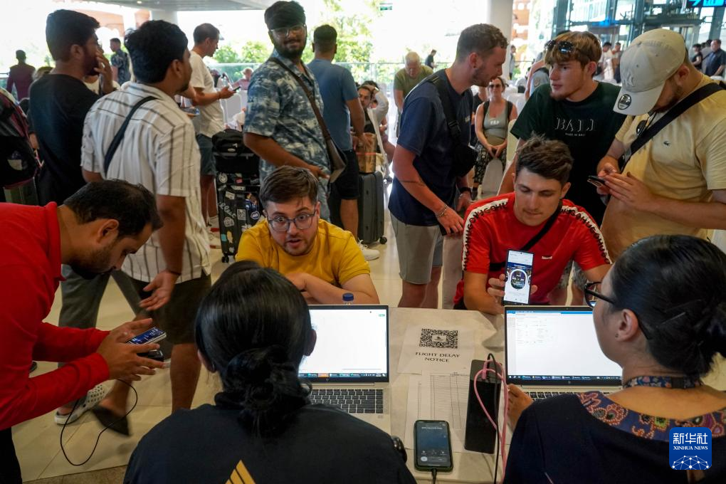 6月18日,在印度尼西亞巴厘島伍拉萊國際機場,由于勒沃托比-拉基拉基火山噴發(fā)導致航班延誤的乘客們詢問信息。新華社發(fā)(比辛拉西攝)