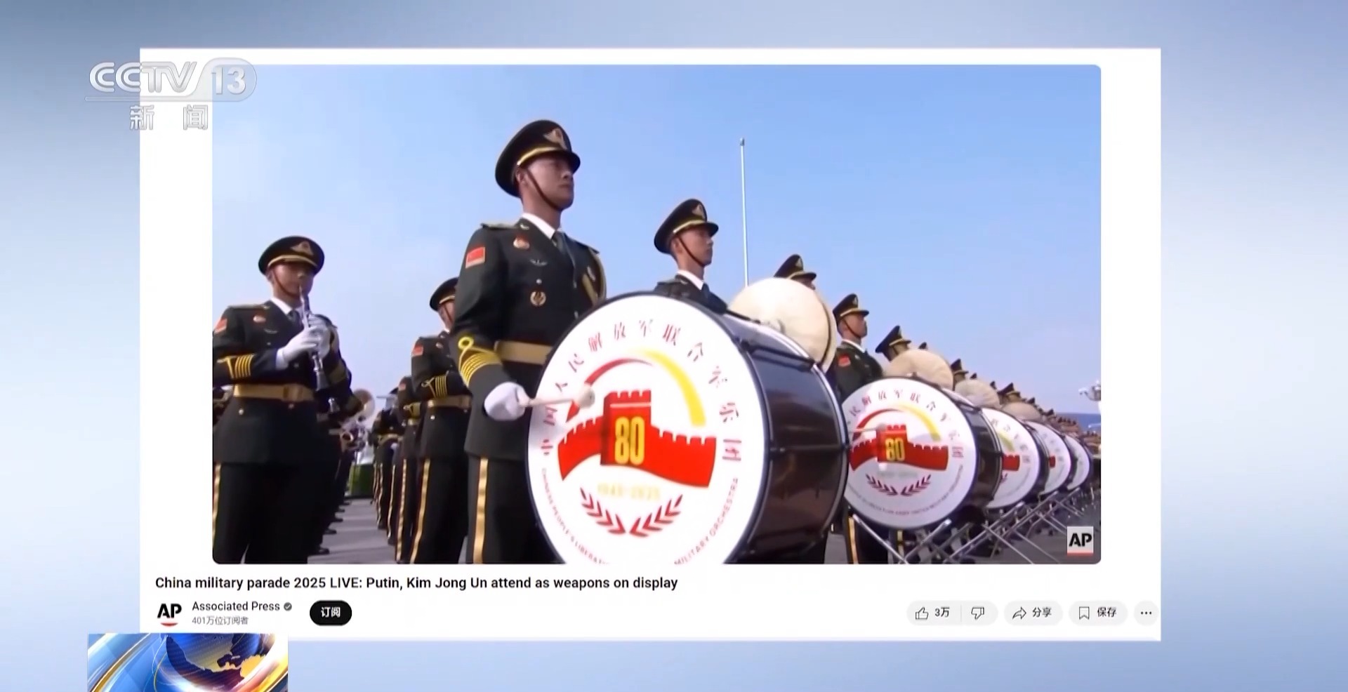 美國有線電視新聞網(wǎng)(CNN)通過現(xiàn)場記者和總臺的直播信號幾乎全程關(guān)注了抗戰(zhàn)勝利80周年紀(jì)念大會。美國廣播公司(ABC)、美國全國廣播公司(NBC)、美聯(lián)社等多家媒體和通訊社也對此進(jìn)行了轉(zhuǎn)播和報(bào)道。