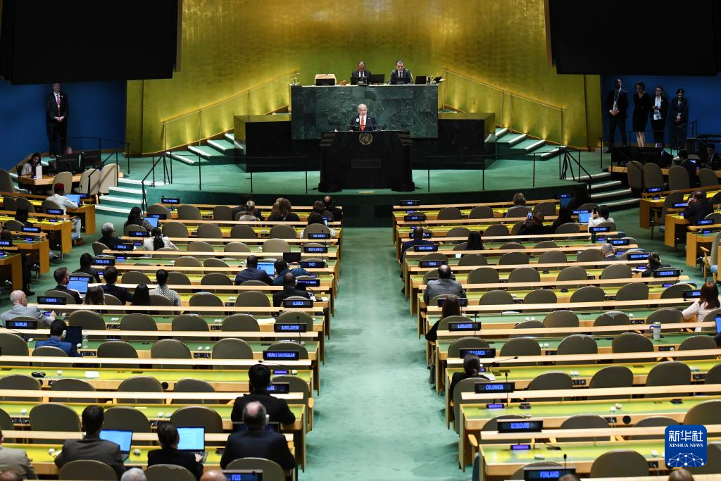 9月26日,在位于紐約的聯(lián)合國總部,眾多代表退場抗議。新華社記者李睿攝