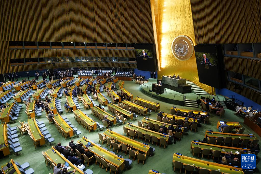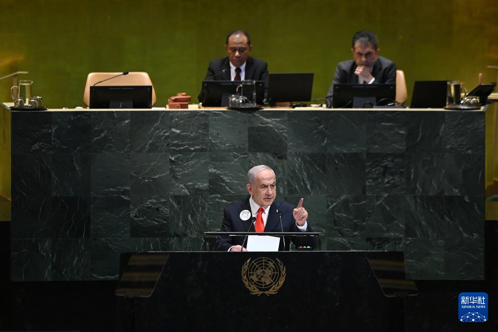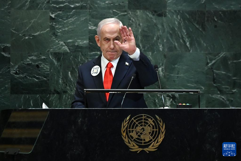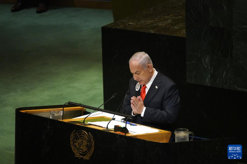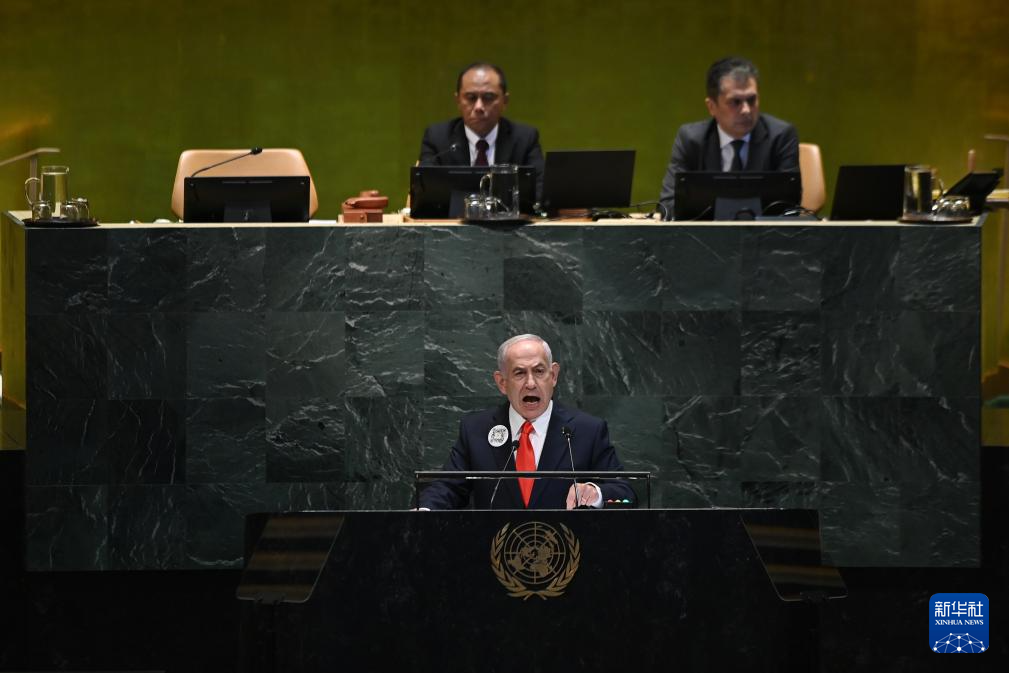 當(dāng)日,以色列總理內(nèi)塔尼亞胡在第80屆聯(lián)合國大會一般性辯論發(fā)言。眾多聯(lián)合國會員國代表起身離席,退場抗議。新華社記者吳曉凌攝