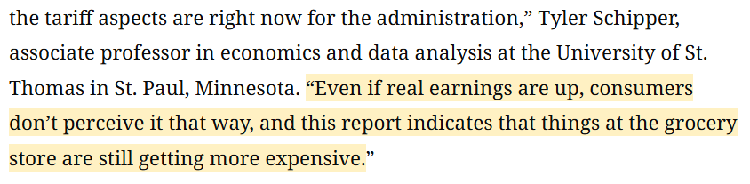 經(jīng)濟(jì)學(xué)家泰勒 施皮珀(Tyler Schipper)直言:“老百姓感受不到工資上漲,他們只知道超市商品的價(jià)格越來越貴。”