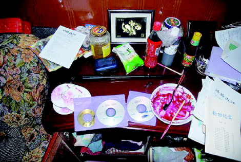 2013年5月,陸雪琴等16名“法輪功”邪教骨干,用紅色顏料、番茄醬、可樂等調(diào)制而成的“血漿”,找來警棍、木板、繩索、膠帶、牙刷等刑具,用于拍攝、制作圖片的相機、電腦等設備及大量的“法輪功”非法宣傳品和光盤書籍等,偽造了又一例“法輪功”組織人員在監(jiān)獄遭受酷刑迫害的照片。