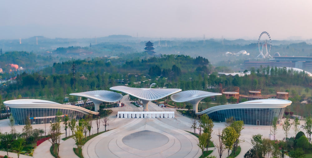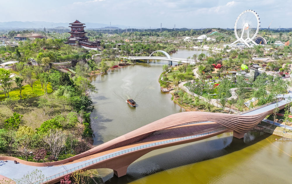 窗含千秋,門(mén)泊萬(wàn)里。從空中俯瞰,2024年成都世界園藝博覽會(huì)主會(huì)場(chǎng)如同一朵盛放的芙蓉花,迎接世界各方賓朋。