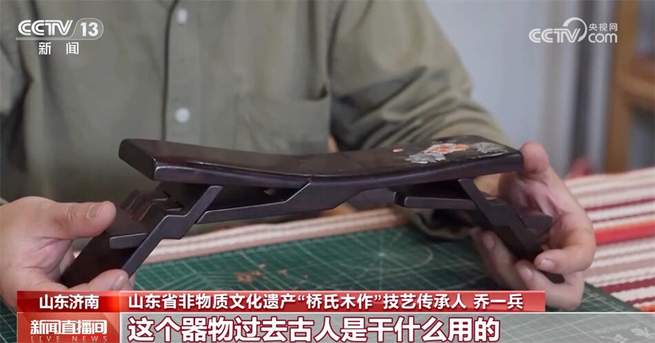 山東省非物質(zhì)文化遺產(chǎn)“橋氏木作”技藝傳承人喬一兵介紹:“它本身是一整塊木頭六個面,通過鋸和鑿形成一個器物。這個器物過去古人是干什么用的?當(dāng)枕頭用的,也可以當(dāng)?shù)首佑?,它最大的特點是可以折疊,攜帶非常方便,傳說是魯班發(fā)明的。和眾多的優(yōu)秀的傳統(tǒng)技藝一樣,它深層次代表的是中國的一些思想、一些哲學(xué)、一些文化在里邊,魯班枕的核心是平衡和和諧,我覺得我很有必要把它傳承下來,發(fā)揚光大?!?/p>