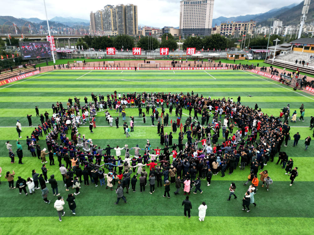 ↑2024年2月26日,中法青年友誼賽在貴州榕江“村超”足球場舉行。