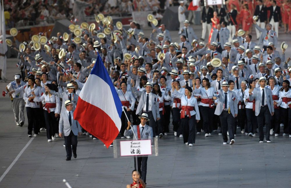 ↑2008年8月8日,法國奧運(yùn)代表團(tuán)在北京奧運(yùn)會(huì)開幕式上入場。