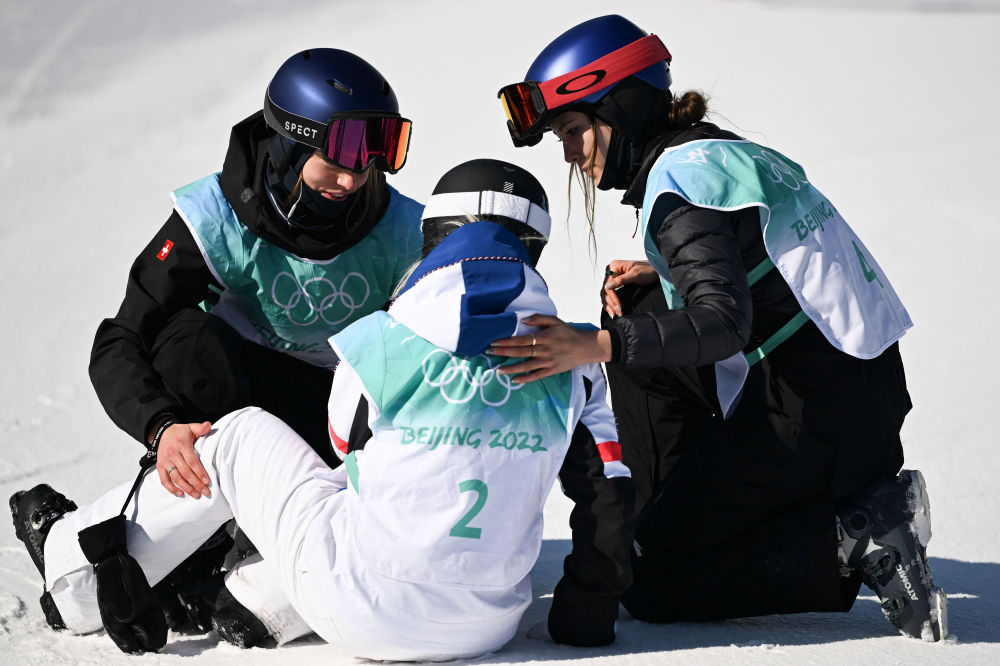 ↑2022年2月8日,中國選手谷愛凌(右)和瑞士選手瑪?shù)贍柕隆じ窭啄拢ㄗ螅┰诒本?022年冬奧會(huì)自由式滑雪女子大跳臺(tái)決賽后安慰法國選手泰絲·勒德。奧運(yùn)賽場外中法體育界展開多領(lǐng)域交流與合作2011年6月法網(wǎng)賽場上演中國奇跡29歲的中國姑娘李娜成為第一個(gè)奪得網(wǎng)球大滿貫賽事單打冠軍的亞洲人