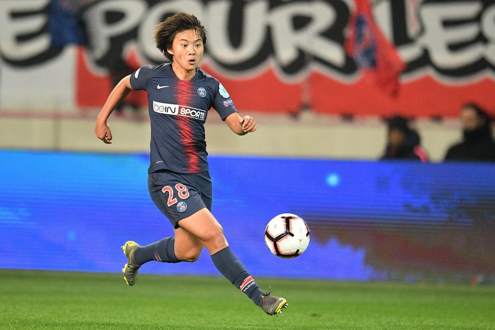 ↑2019年3月27日,巴黎圣日耳曼隊(duì)球員王霜在在女足歐冠1/4決賽次回合與切爾西隊(duì)的比賽中帶球突破。跟隨王霜的腳步 2022年,李夢(mèng)雯、楊莉娜相繼加盟巴黎圣日耳曼俱樂部