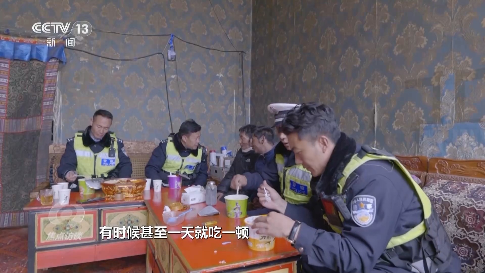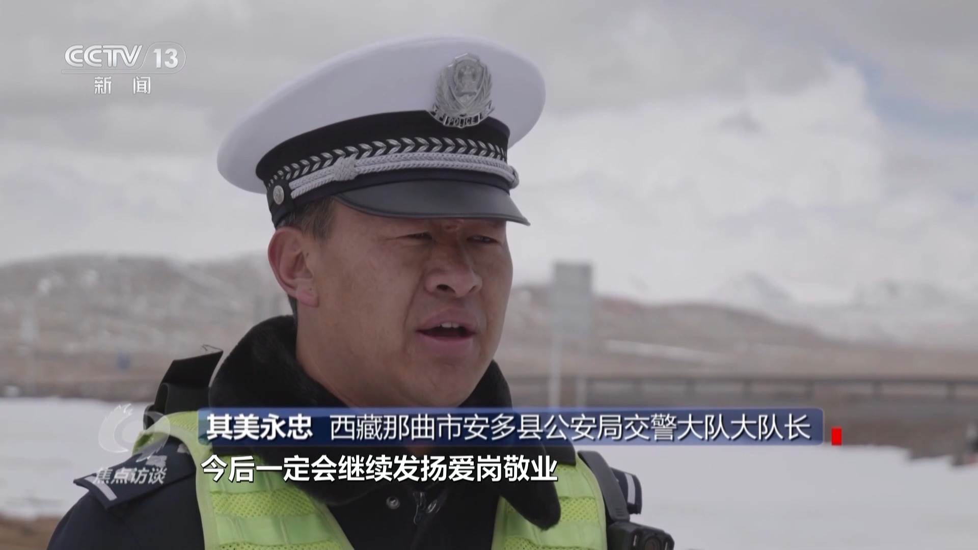 西藏那曲市安多縣公安局交警大隊(duì)大隊(duì)長 其美永忠:身體是絕對有影響的,腸胃方面主要是我們吃飯沒規(guī)律,有時候甚至一天就吃一頓。從來沒有一個人說過因個人的原因或者家庭的原因要下山,我們隊(duì)伍都是一起上山、一起下山的這種精神。