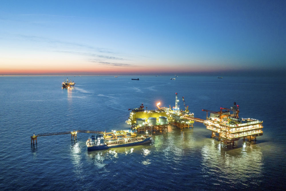 這是2024年1月25日拍攝的埕北油田全景(無(wú)人機(jī)照片)。當(dāng)日,位于渤海灣西南部的埕北油田油氣處理與岸電設(shè)備共建平臺(tái)——CEPC(中心平臺(tái))正式投產(chǎn),該平臺(tái)可使油田接入來(lái)自陸地的綠色電力,減少海上“自發(fā)電”帶來(lái)的天然氣和原油消耗。新華社發(fā)(杜鵬輝攝)