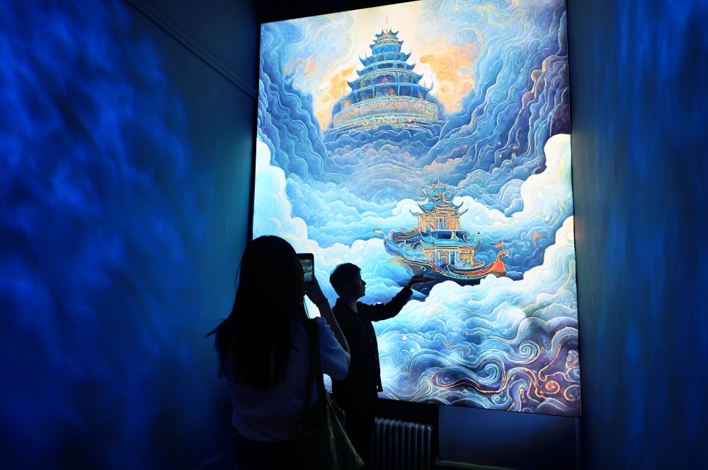 “很多觀眾感受到‘在百年洋樓中仰望千年文明’的奇妙感覺?!碧旖驍?shù)字藝術(shù)博物館講解員黃麗潔說,這個(gè)展覽互動(dòng)性、社交感強(qiáng),通過對經(jīng)典藝術(shù)作品沉浸式呈現(xiàn),讓數(shù)字藝術(shù)走近普通觀眾,為大眾文化生活帶來全新體驗(yàn)。