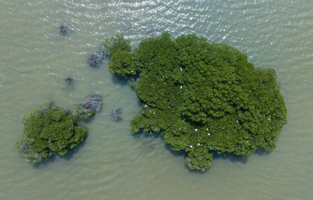 俯瞰廣東湛江市區(qū)海邊的紅樹林(2023年5月25日攝,無人機照片)。