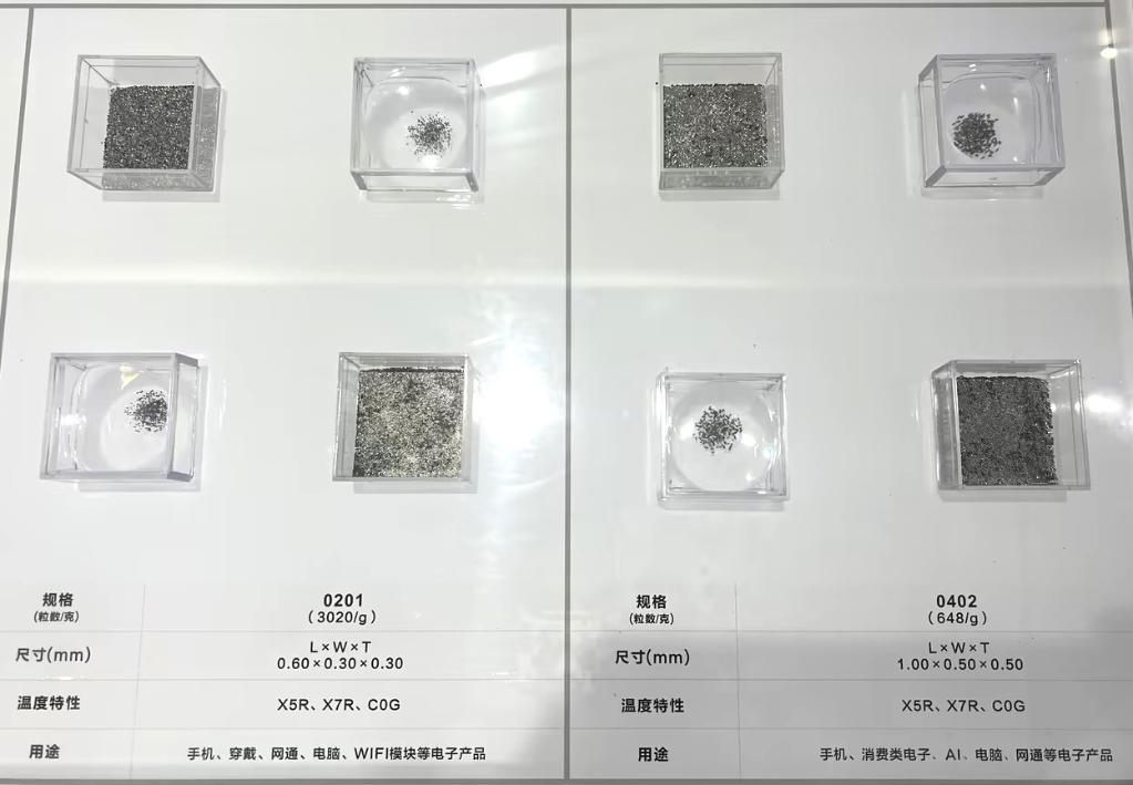 風華高科生產(chǎn)的部分電容產(chǎn)品,用于手機、消費類電子、AI等電子產(chǎn)品。受訪企業(yè)供圖