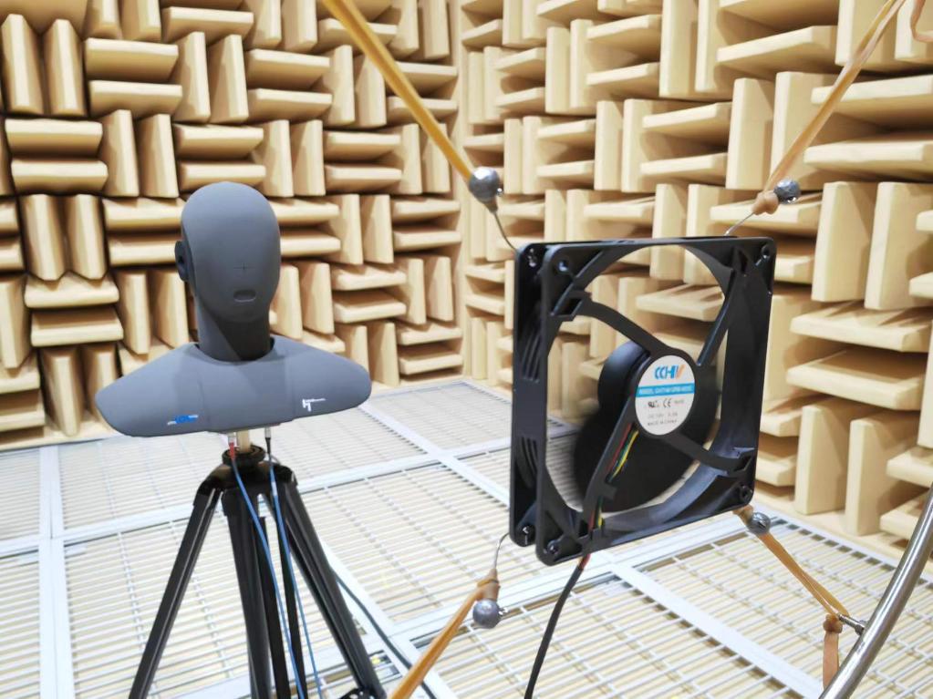 5月19日,晟輝科技實驗室內(nèi),一款風機正在接受噪音檢測。新華社記者謝希瑤 攝