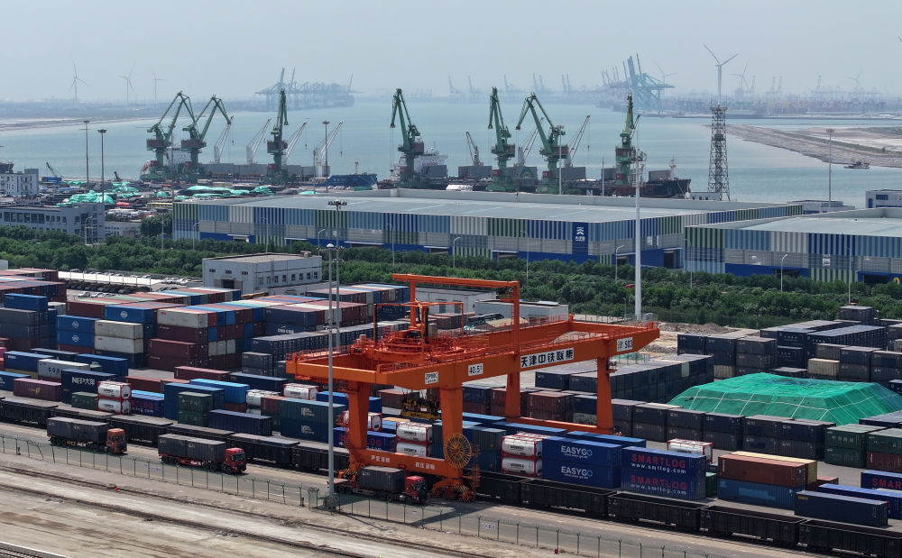 天津港正在實(shí)現(xiàn)“貨通全球”:北京的汽車運(yùn)往東南亞,裝滿進(jìn)口礦石的列車駛向中國(guó)西北,日韓生產(chǎn)的日用品短暫停留后發(fā)往蒙古國(guó),新疆的番茄醬從這里“乘船出海”前往歐洲……