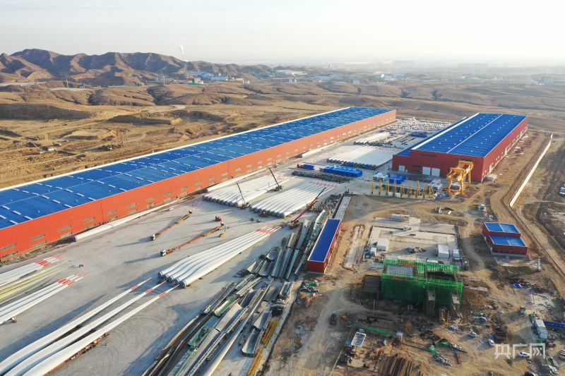 6條百米級(jí)及以上葉片生產(chǎn)線上,一個(gè)超百米長的“裸裝“風(fēng)力發(fā)電葉片放置車間中央,靜待技術(shù)人員“美顏”包裝。自主研制的陸上超大型玻纖葉片便是從這里運(yùn)往沙漠、戈壁、荒漠地區(qū)。