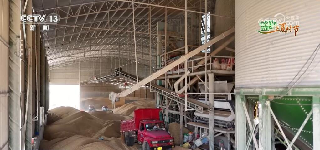 在河南南陽,麥收工作已基本結束。這是南陽鄧州市羅莊鎮(zhèn)的一家糧食收購點,種植戶們把剛剛收割完的小麥直接從田里拉來售賣。水分較低的糧食會直接收到倉庫中,水分較高的糧食則卸在晾曬場中,由烘干設備進行烘干。
