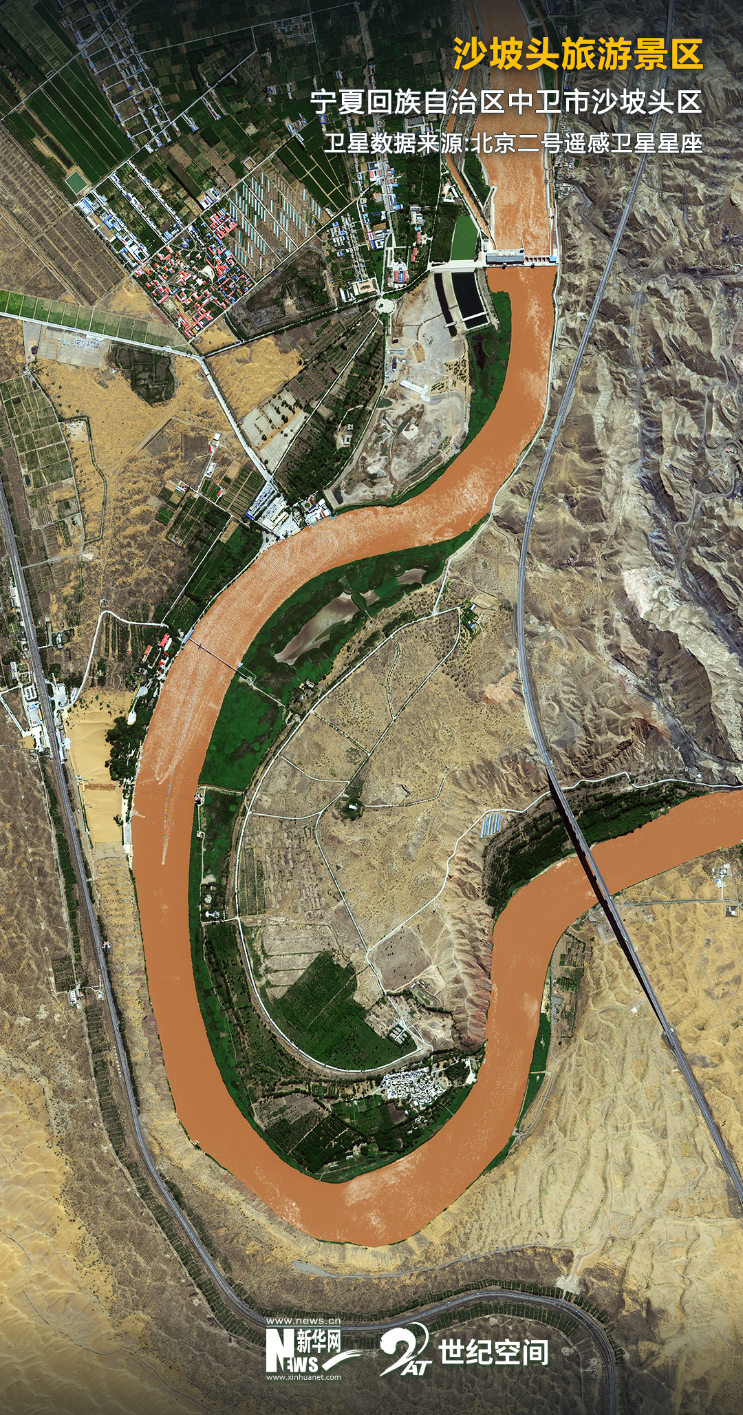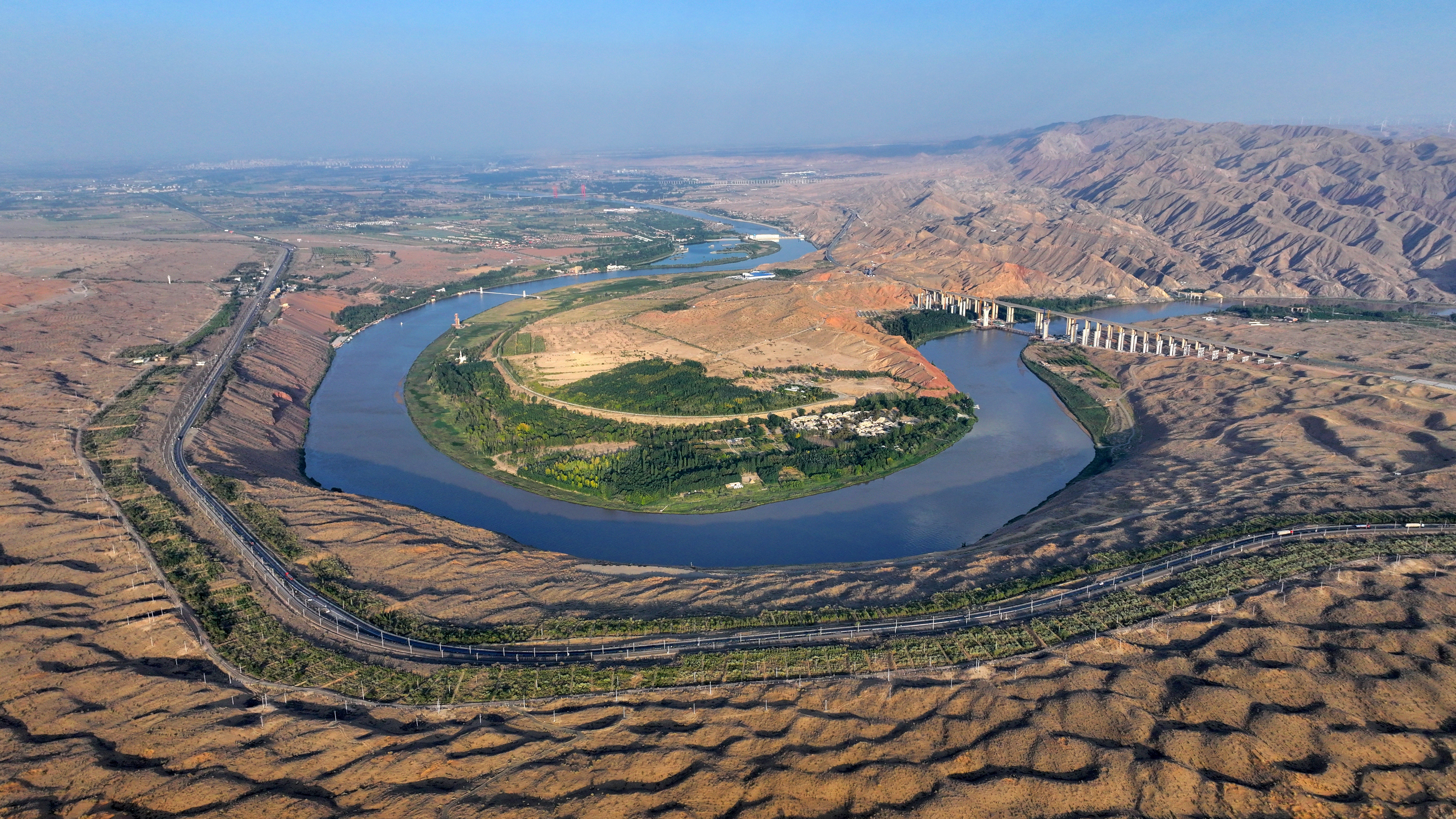 如今,在當(dāng)?shù)赜嘘P(guān)部門開(kāi)展的水系疏浚工程影響下,這里成為沙漠濕地的聚集地。黃河流經(jīng)此地,畫(huà)出了一道蜿蜒的曲線。河的一頭是騰格里沙漠的無(wú)垠瀚海,另一頭被一抹蒼翠鑲嵌在河岸邊。