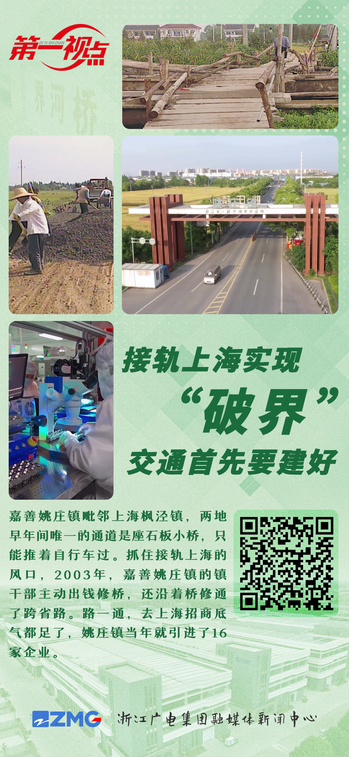 2003年5月,浙江省委、省政府出臺《關(guān)于主動接軌上海積極參與長江三角洲地區(qū)合作與交流的若干意見》。2003年7月,在省委十一屆四次全會上,習近平同志親自擘畫實施“八八戰(zhàn)略”,其中第二條明確提出“進一步發(fā)揮浙江的區(qū)位優(yōu)勢,主動接軌上海、積極參與長江三角洲地區(qū)合作與交流,不斷提高對內(nèi)對外開放水平”。