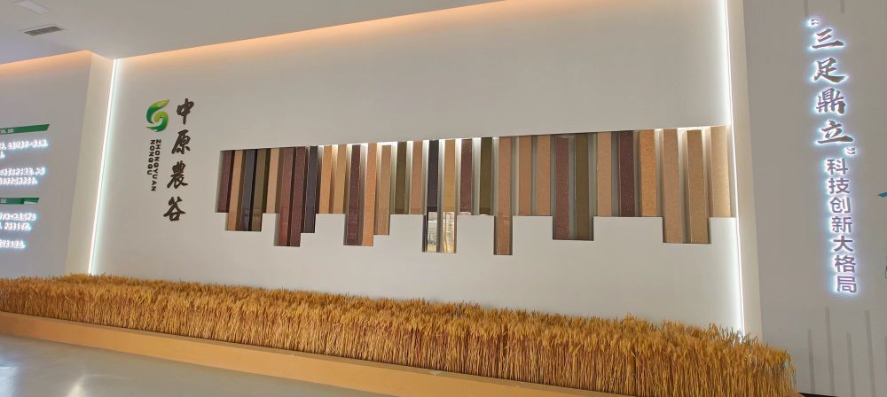小麥、水稻、花生等10余個(gè)品類的種子,在墻面上30根亞克力管柱承裝著,形似風(fēng)吹麥浪,迎接著豐收的季節(jié)。在位于河南省新鄉(xiāng)市的中原農(nóng)谷展廳,來(lái)自河南省內(nèi)各個(gè)縣區(qū)的重要口糧在這里錯(cuò)落有致地展示著,像一座“糧食長(zhǎng)城”一樣,守護(hù)著中原大地的“飯碗”。