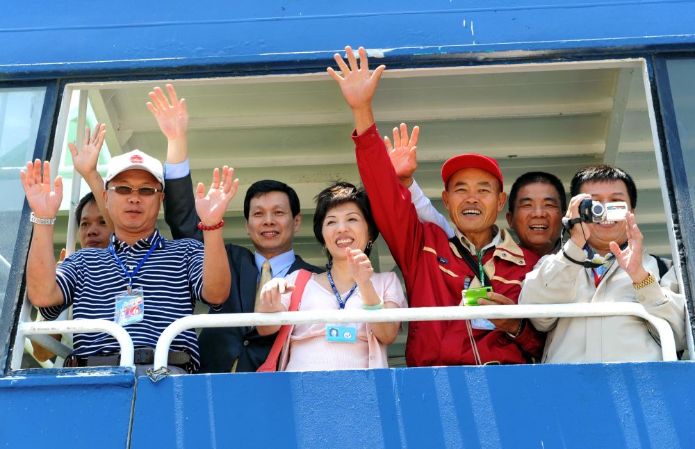 2009年5月15日,350名臺(tái)胞乘坐“海洋拉拉號(hào)”客輪從臺(tái)中港直航福建湄洲島謁祖進(jìn)香,拉開(kāi)了首屆“海峽論壇”活動(dòng)的序幕。新華社記者 張國(guó)俊 攝
