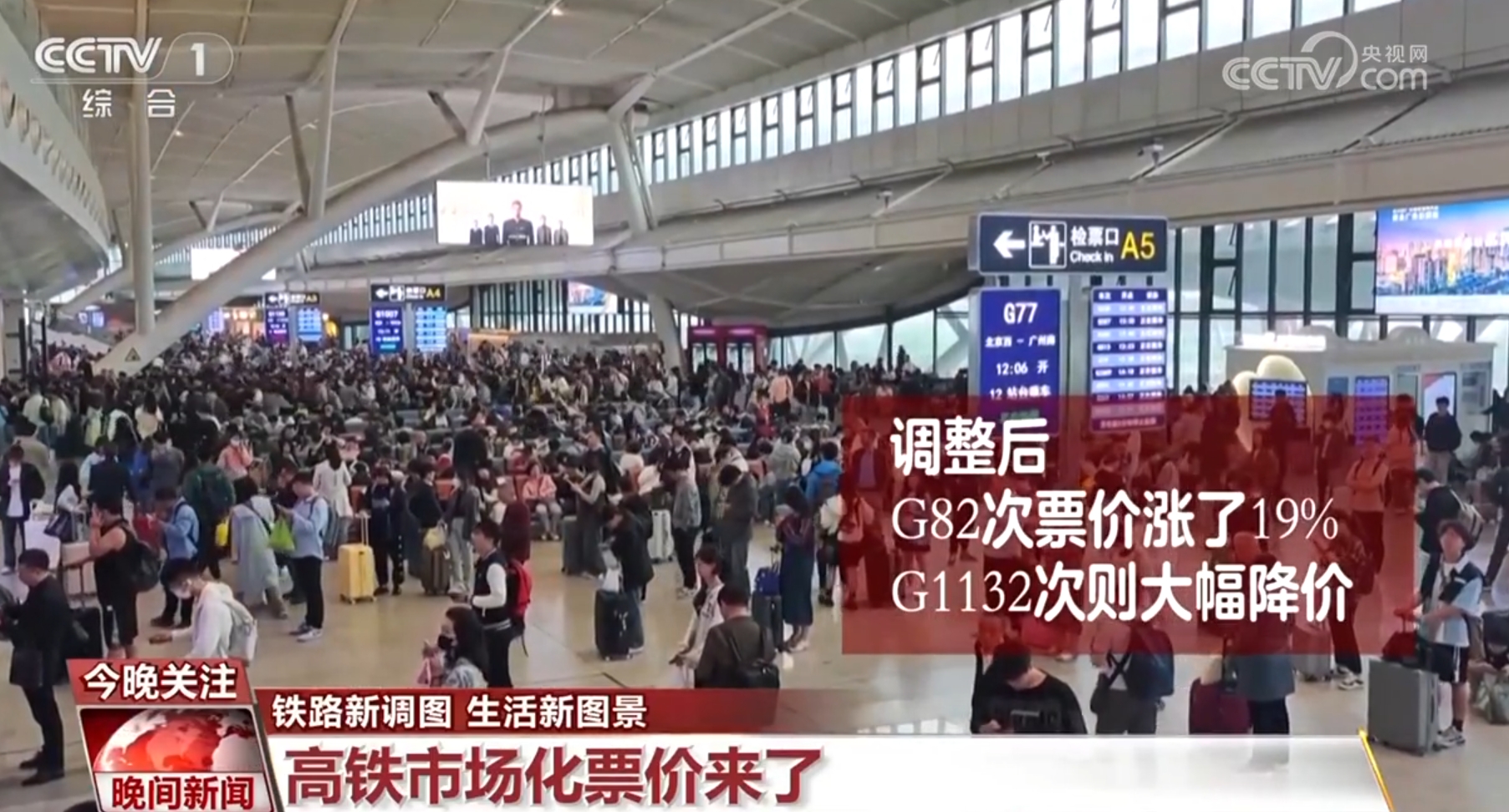 列車執(zhí)行票價(jià)以鐵路12306和相關(guān)車站公告的公布票價(jià)為上限,綜合考慮區(qū)域、淡旺季、時(shí)段等因素,實(shí)行不同幅度的折扣,最低5.5折。以廣州南至武漢的G82次和G1132次為例,后者比前者運(yùn)行時(shí)間長(zhǎng)一小時(shí),但目前兩者票價(jià)相同。而6月15日調(diào)整后,G82次票價(jià)漲了19%,而G1132次則大幅降價(jià)。
