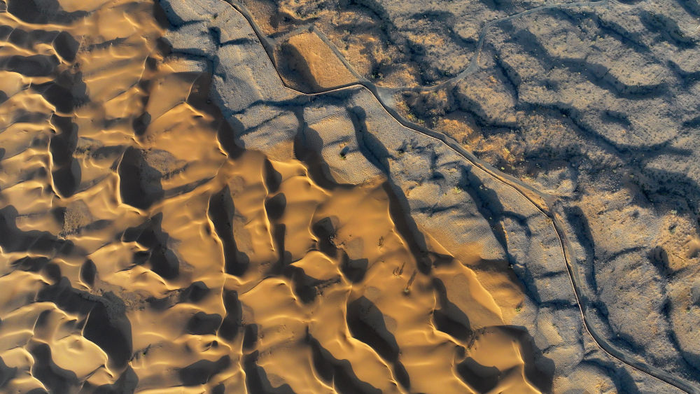 這片黃沙橫跨寧夏和內(nèi)蒙古兩地,屬于毛烏素沙地。不久前,這里剛剛打了一場省際聯(lián)手治沙的攻堅戰(zhàn)。