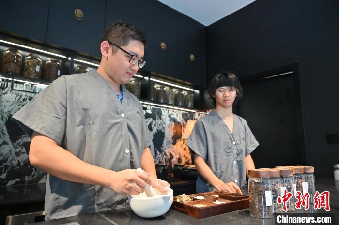 “我們通過在休息區(qū)增設(shè)了‘中醫(yī)和你聊會兒天’項目,顧客能在聽歌、品藥膳的過程中體驗把脈,以親和的方式,讓客人享受單獨(dú)診療咨詢服務(wù)。”該診所負(fù)責(zé)人甘斌介紹,新潮中醫(yī)館搭建新社交場景,讓民眾隨時感受中醫(yī)文化。在有著十五年從醫(yī)經(jīng)驗的他看來,“舊與新”的碰撞讓中醫(yī)文化變新潮,養(yǎng)生也能很“酷”。