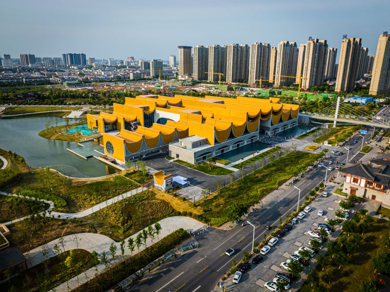 盛夏時節(jié),駐足洛河(大運河洛陽段)之畔,能望見別致的金色屋頂在陽光下熠熠生輝,好似連綿起伏的風吹船帆。這里,正是洛陽隋唐大運河文化博物館。