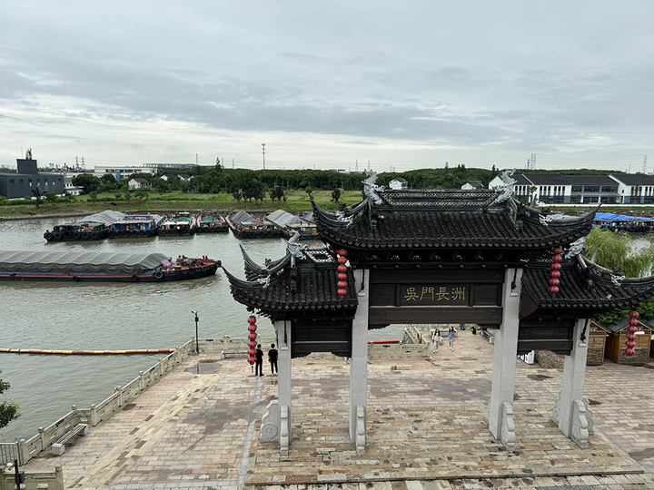 行走在運(yùn)河公園,亭、臺(tái)、樓、閣錯(cuò)落有致,碑、牌、匾、聯(lián)引人思緒。登望運(yùn)閣極目遠(yuǎn)眺,河面上舟楫如織。作為大運(yùn)河最繁忙的河段之一,每天,有數(shù)千條貨船從這里穿行,他們?cè)凇皡情T長(zhǎng)洲”的石坊前劃過的一瞬間,仿佛古今同框,一眼千年。