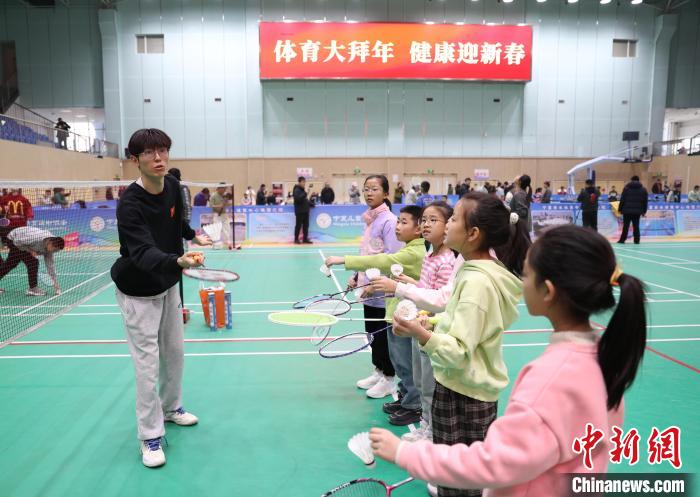 1月18日,2024年寧夏全民健身大拜年暨體育項(xiàng)目推廣普及培訓(xùn)班在銀川開(kāi)班,小朋友們跟著教練學(xué)習(xí)羽毛球顛球。記者 于晶 攝