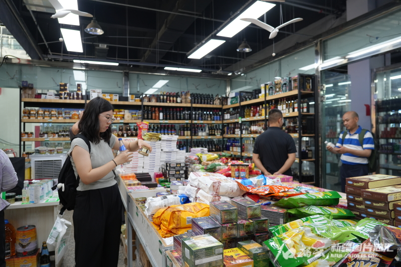 7月12日,游客正在巴克圖中哈邊民互市貿易區(qū)內的絲路文化商品城購物。代姣美攝