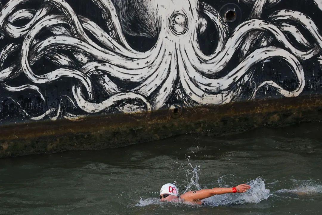 與鐵人三項一樣,馬拉松游泳比賽同樣在塞納河進行,辛鑫是中國隊在該項目中唯一的選手。