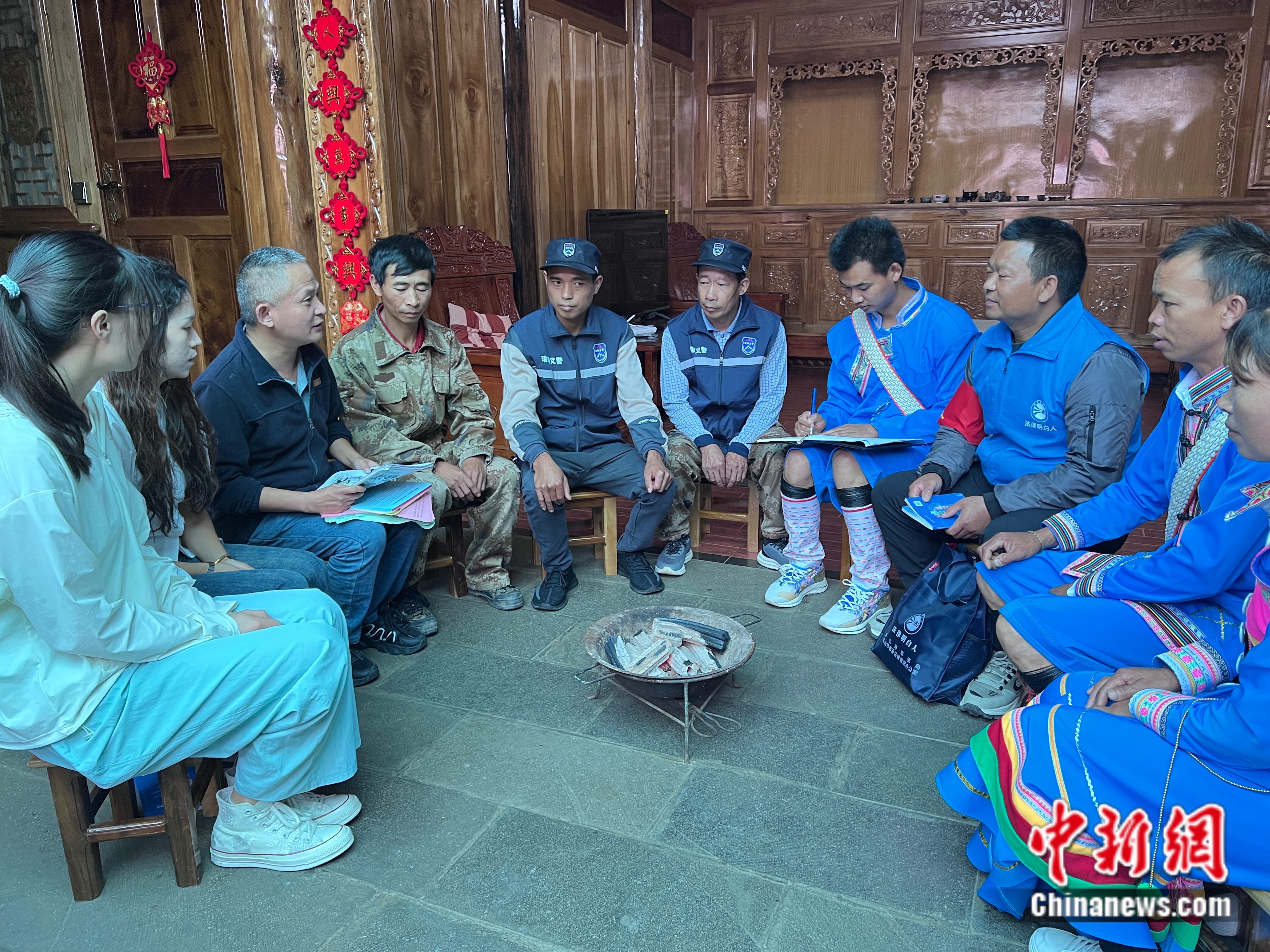 在國門新村,一場火塘?xí)谶M(jìn)行。邵萌 攝