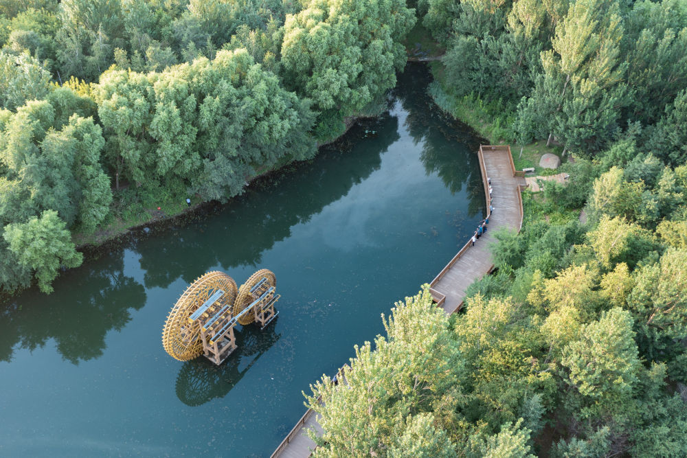↑這是哈爾濱太陽島國家濕地公園局部景色(8月20日攝,無人機(jī)照片)。