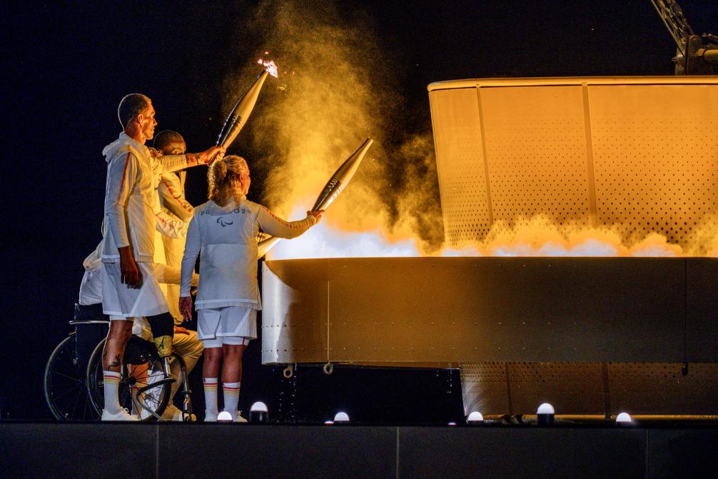 8月28日,火炬手在巴黎殘奧會(huì)開(kāi)幕式上點(diǎn)燃主火炬。新華社記者 黃偉 攝