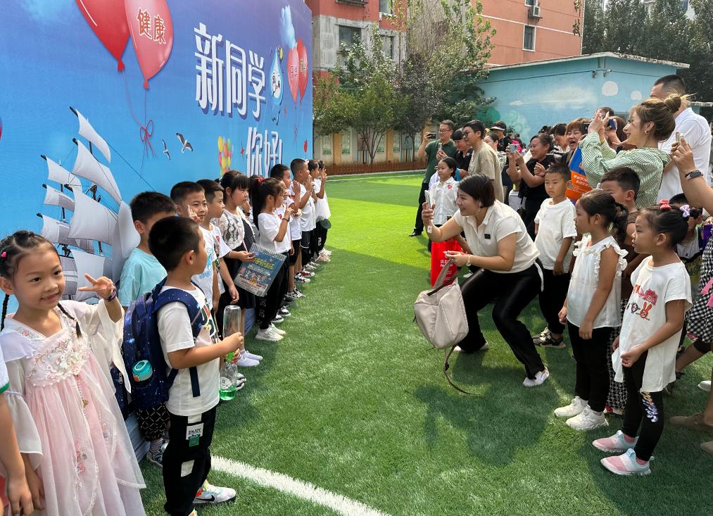 在沈陽市珠江五校教育集團怒江校區(qū),千余名小學(xué)一年級新生來校報到。“新同學(xué)你好”的巨型展板下,孩子們展露笑臉、拍照留念,準(zhǔn)備邁入人生的嶄新階段。
