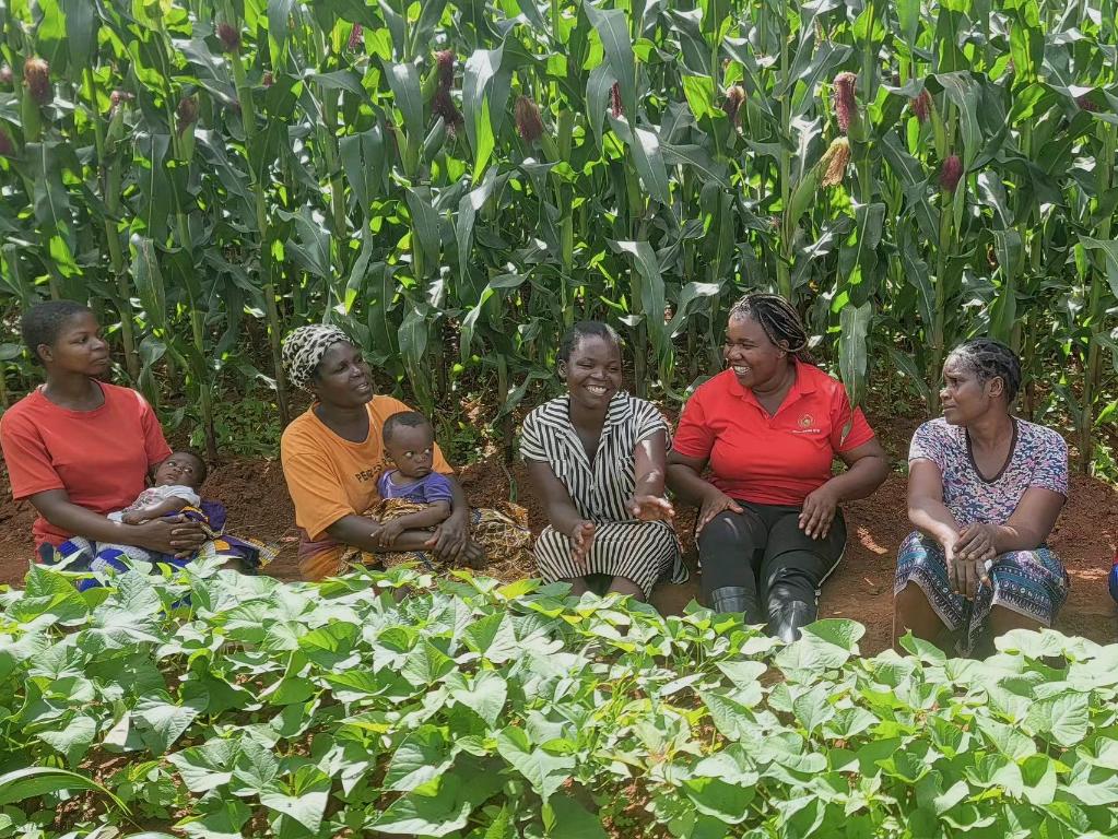 “中非科技小院”留學生庫瓦莉(右二)在馬拉維鄉(xiāng)村和農(nóng)民們一起討論中國“大豆—玉米間作技術(shù)”(2月5日攝)。新華社發(fā)(受訪者供圖)