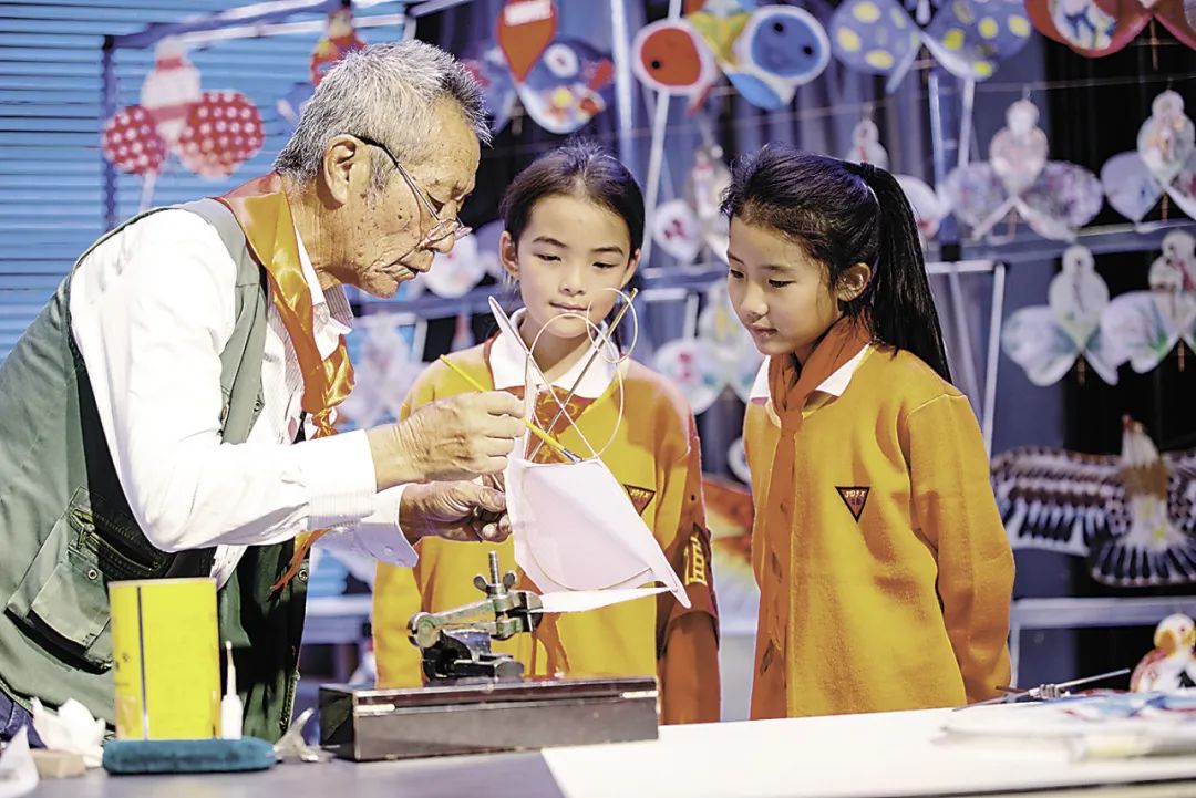 滇派風(fēng)箏傳承人給學(xué)生講授風(fēng)箏制作技藝。