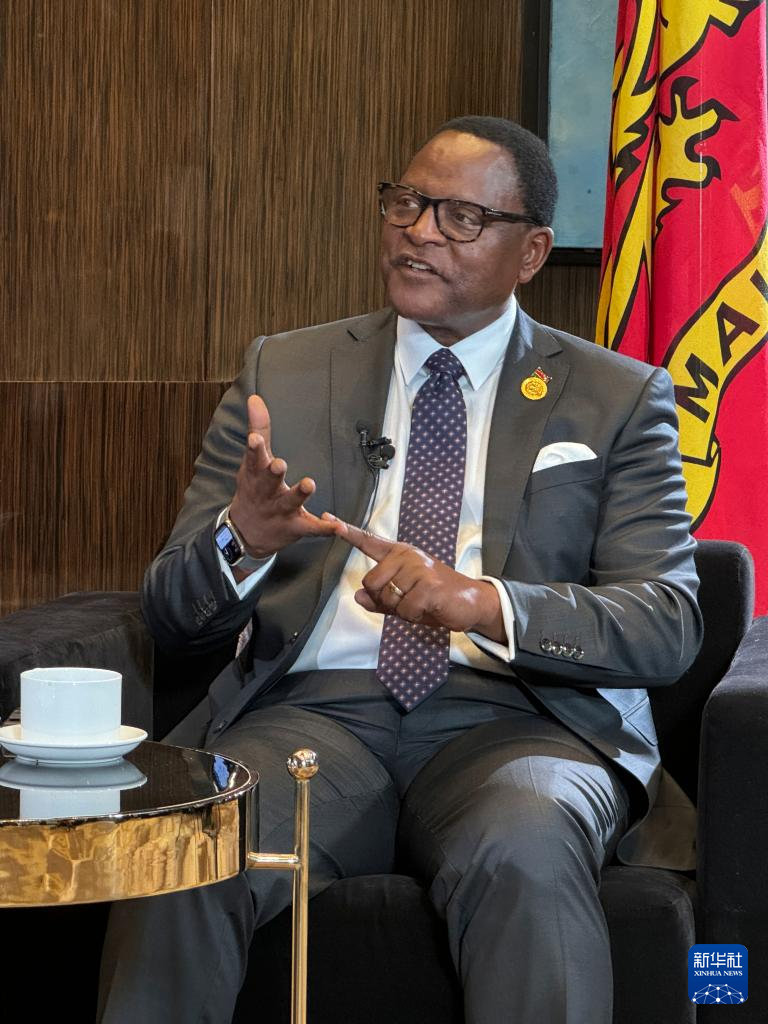 9月3日,來(lái)華出席中非合作論壇北京峰會(huì)的馬拉維總統(tǒng)拉扎勒斯·查克維拉在北京接受新華社記者采訪。新華社記者 王普 攝