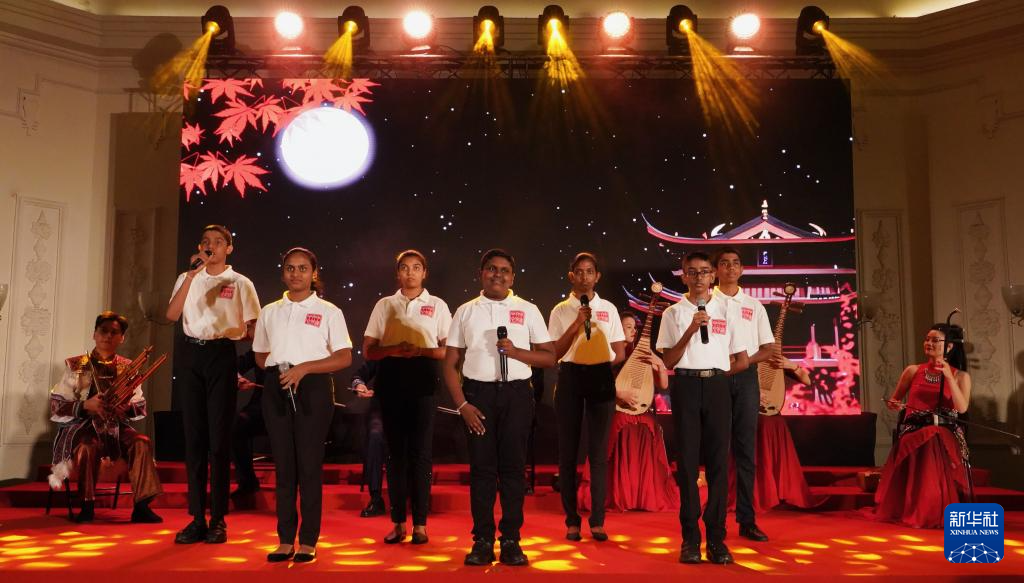 9月16日,在斯里蘭卡首都科倫坡,斯里蘭卡中學(xué)生在“天涯共此時(shí)-中秋詩會(huì)”活動(dòng)上表演。新華社記者 伍岳 攝
