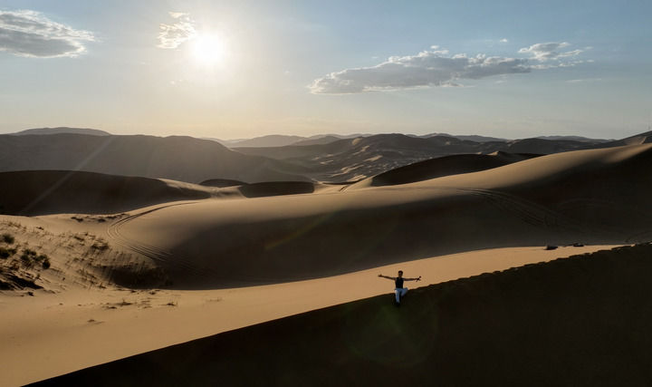 巴丹吉林沙漠的魅力,讓領(lǐng)略過的人意猶未盡、魂牽夢繞。德國探險家布魯諾·鮑曼于1994年首次徒步穿越巴丹吉林,從此與這片沙漠結(jié)下不解之緣。在過去30多年中,他多次來到巴丹吉林,用文字和鏡頭記錄這里的神秘風(fēng)貌,并出版了《我的世界 沙漠之旅》一書?!鞍偷ぜ稚衬堑厍蛏献蠲匀说牡胤街?,我計劃明年再次來這里進行駱駝之旅。”鮑曼說。