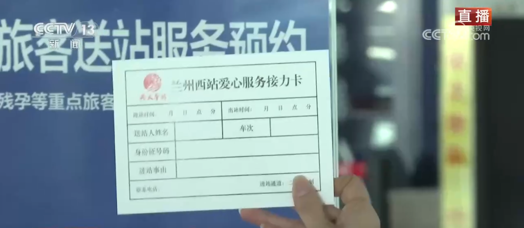 記者手里拿的“愛(ài)心服務(wù)接力卡”是今年車(chē)站升級(jí)的服務(wù)。針對(duì)沒(méi)有車(chē)票不能接送站的情況,可以在進(jìn)站口說(shuō)明情況之后領(lǐng)取“接力卡”作為通行的憑據(jù),在卡片上寫(xiě)清楚個(gè)人信息、聯(lián)系方式和進(jìn)站事由之后,直接進(jìn)站接送老幼病殘?jiān)械戎攸c(diǎn)旅客,出站時(shí)再把這張接力卡交回工作人員手中,完成閉環(huán)服務(wù)。