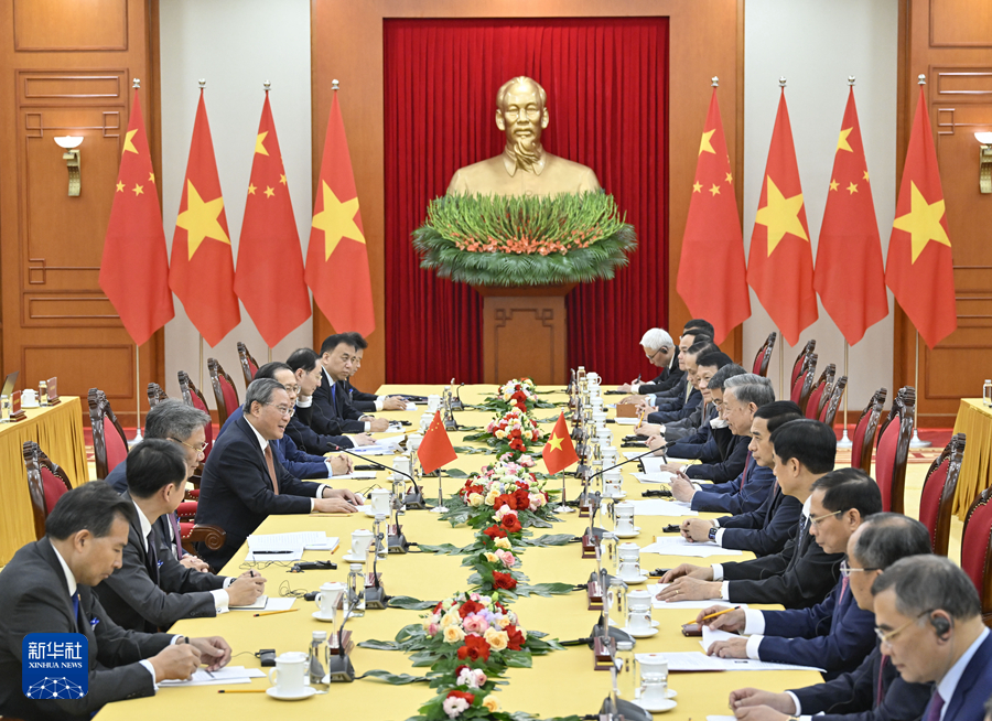 李強(qiáng)首先轉(zhuǎn)達(dá)習(xí)近平總書(shū)記、國(guó)家主席對(duì)蘇林總書(shū)記、國(guó)家主席的親切問(wèn)候。李強(qiáng)表示,今年8月,兩黨兩國(guó)最高領(lǐng)導(dǎo)人在北京舉行會(huì)晤,就推進(jìn)中越命運(yùn)共同體建設(shè)作出戰(zhàn)略擘畫,為兩國(guó)關(guān)系發(fā)展指明了方向。中方愿同越方一道落實(shí)兩黨兩國(guó)最高領(lǐng)導(dǎo)人重要共識(shí),賡續(xù)傳統(tǒng)友誼,密切高層交往,加強(qiáng)戰(zhàn)略溝通,緊密團(tuán)結(jié)協(xié)作,堅(jiān)定推進(jìn)構(gòu)建具有戰(zhàn)略意義的中越命運(yùn)共同體。