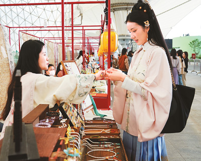 自2018年起,中國(guó)絲綢博物館每年舉辦“國(guó)絲漢服節(jié)”,吸引眾多漢服愛好者、漢服商家參加。他們不僅欣賞跨越千年的服飾文物,也從中獲得啟發(fā)和靈感。