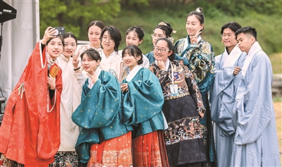 “穿著傳統(tǒng)服飾,常常伴隨著對(duì)古代禮儀和文化習(xí)俗的學(xué)習(xí)和效仿,如禮茶、撫琴等,年輕人得以更深入地了解和體驗(yàn)中華傳統(tǒng)文化的豐富內(nèi)涵,接受傳統(tǒng)文化的熏陶?!表n丹說。