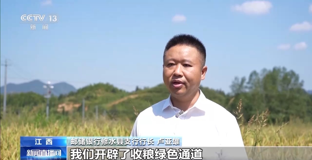郵儲銀行修水縣支行行長 盧亞雄:我們開辟了收糧綠色通道,全力保障了秋糧貸款及時足額發(fā)放。截至目前,發(fā)放秋糧行業(yè)貸款超2億元。