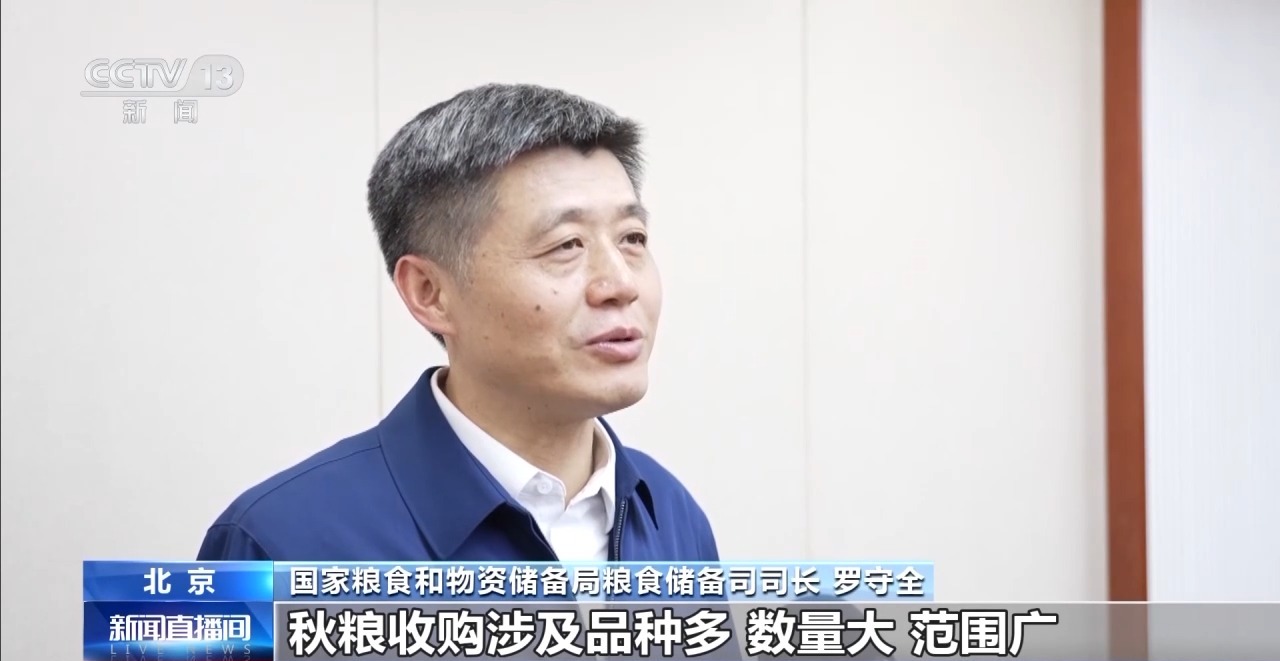 國家糧食和物資儲備局糧食儲備司司長 羅守全:目前,南方中晚稻已經(jīng)上市,東北和華北秋糧還有半個月左右也將集中上市。目前,主產(chǎn)區(qū)準(zhǔn)備收購倉容超過3億噸,能夠滿足農(nóng)民售糧需求。